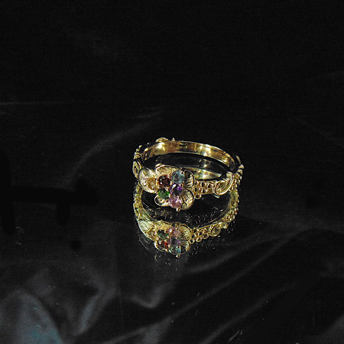 Złoty Pierścionek Secesyjny z Kolorowymi Kamieniami