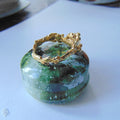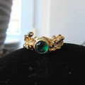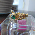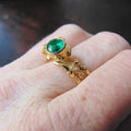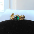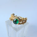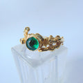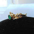 Pierścionek pozłacany z syntetycznym szmaragdem Gałązki