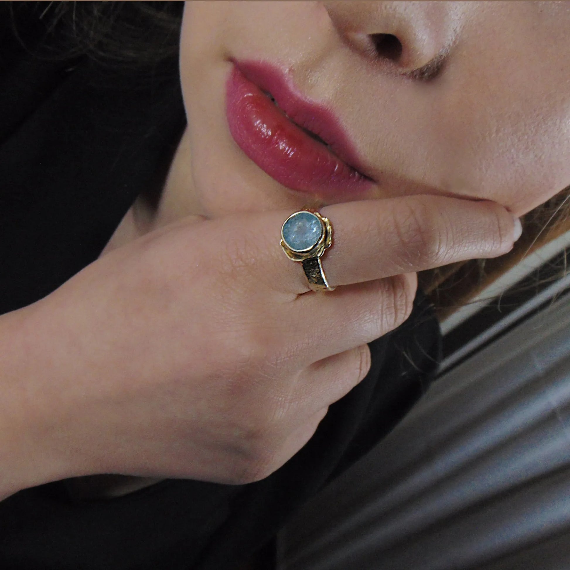Pierścionek pozłacany z akwamarynem - EPIR Art Jewellery&Gemstone
