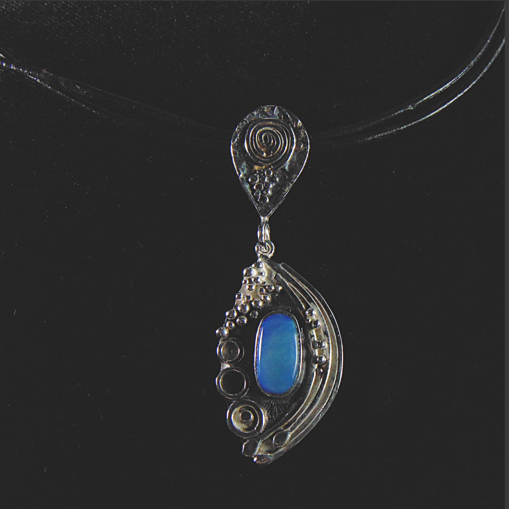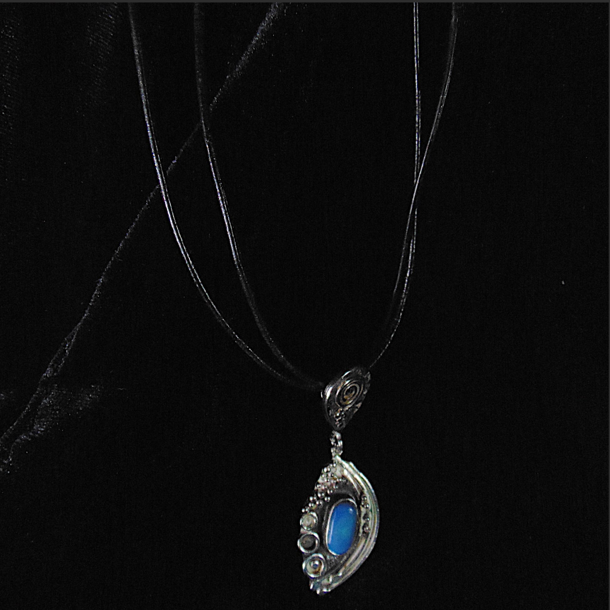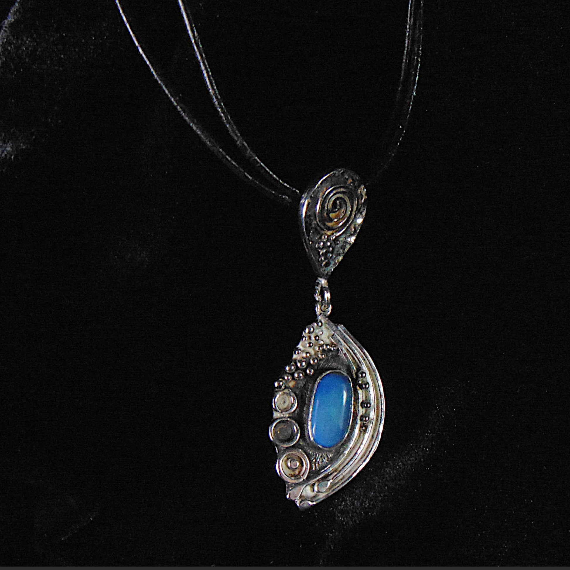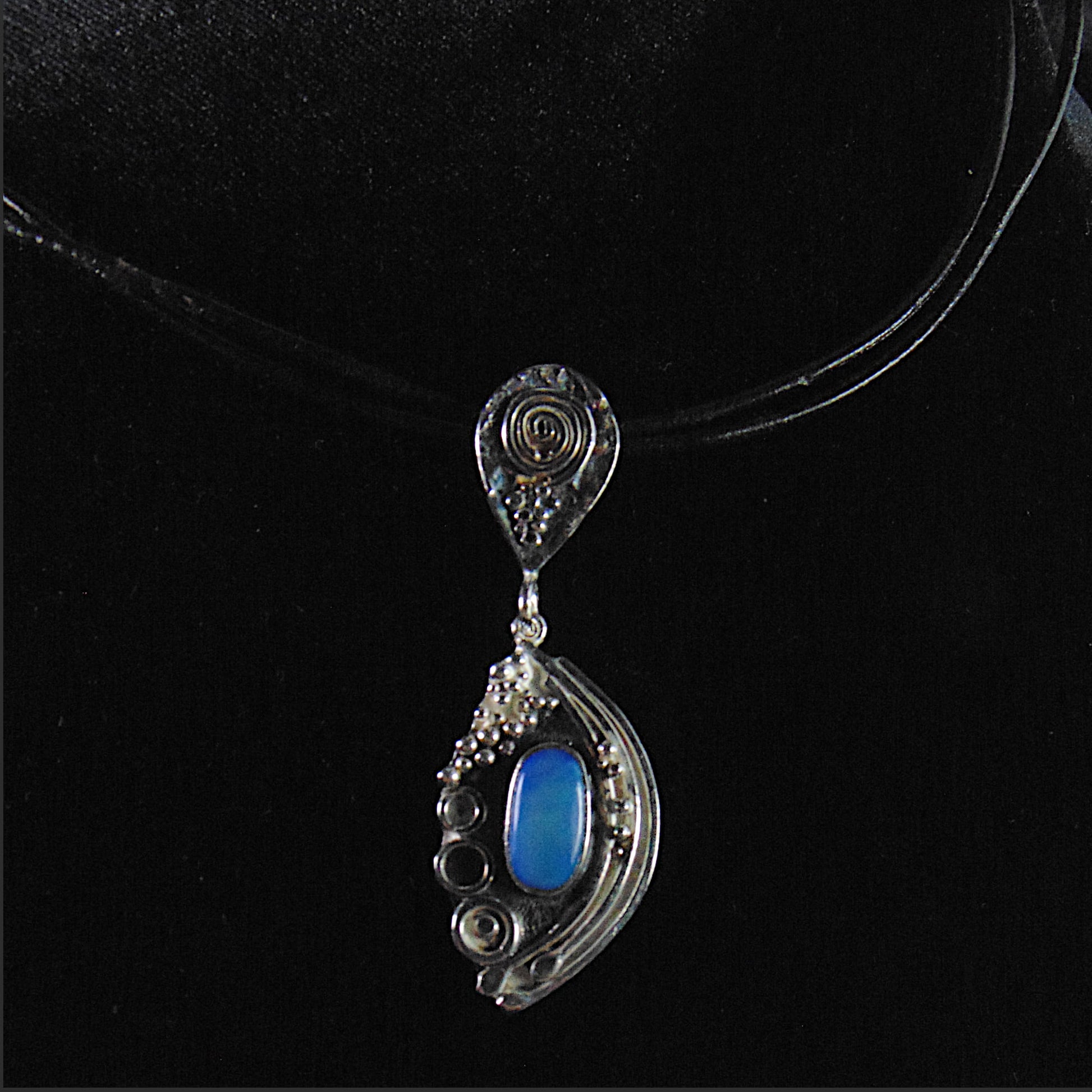 Srebrny Wisior Fantazyjny z Niebieskim Opalem