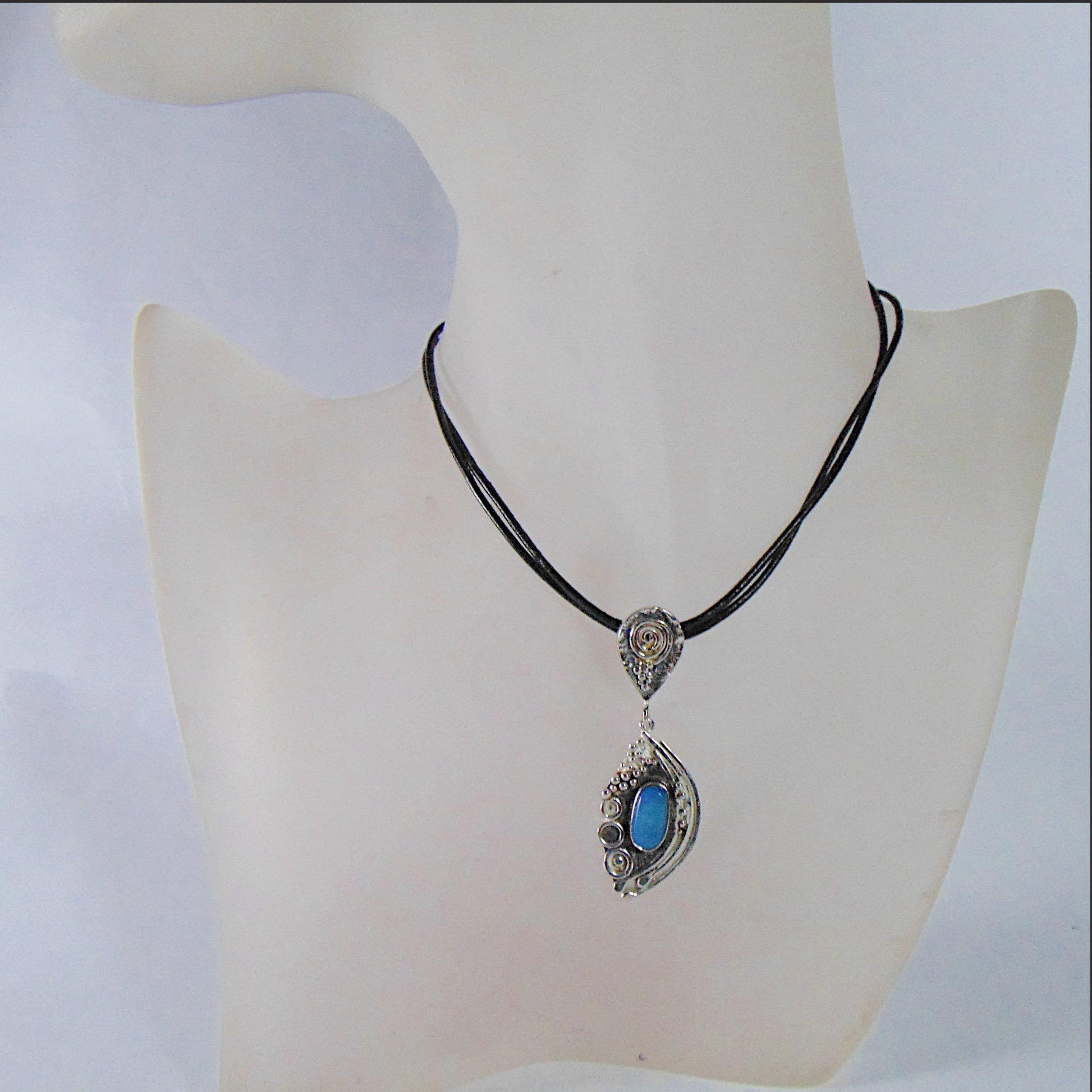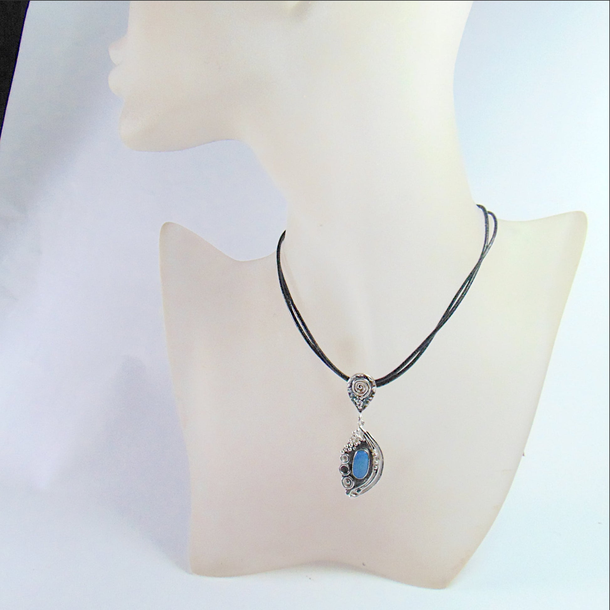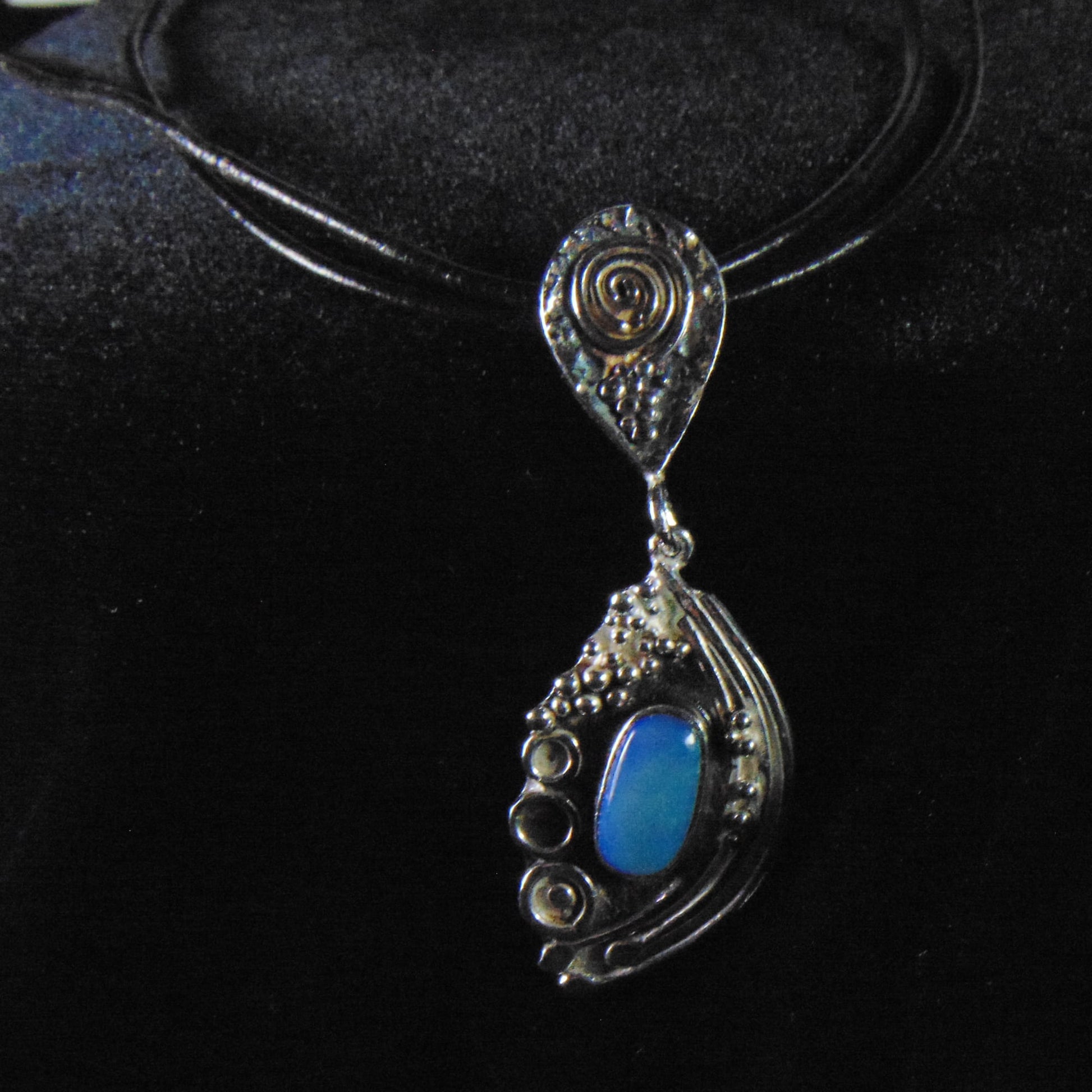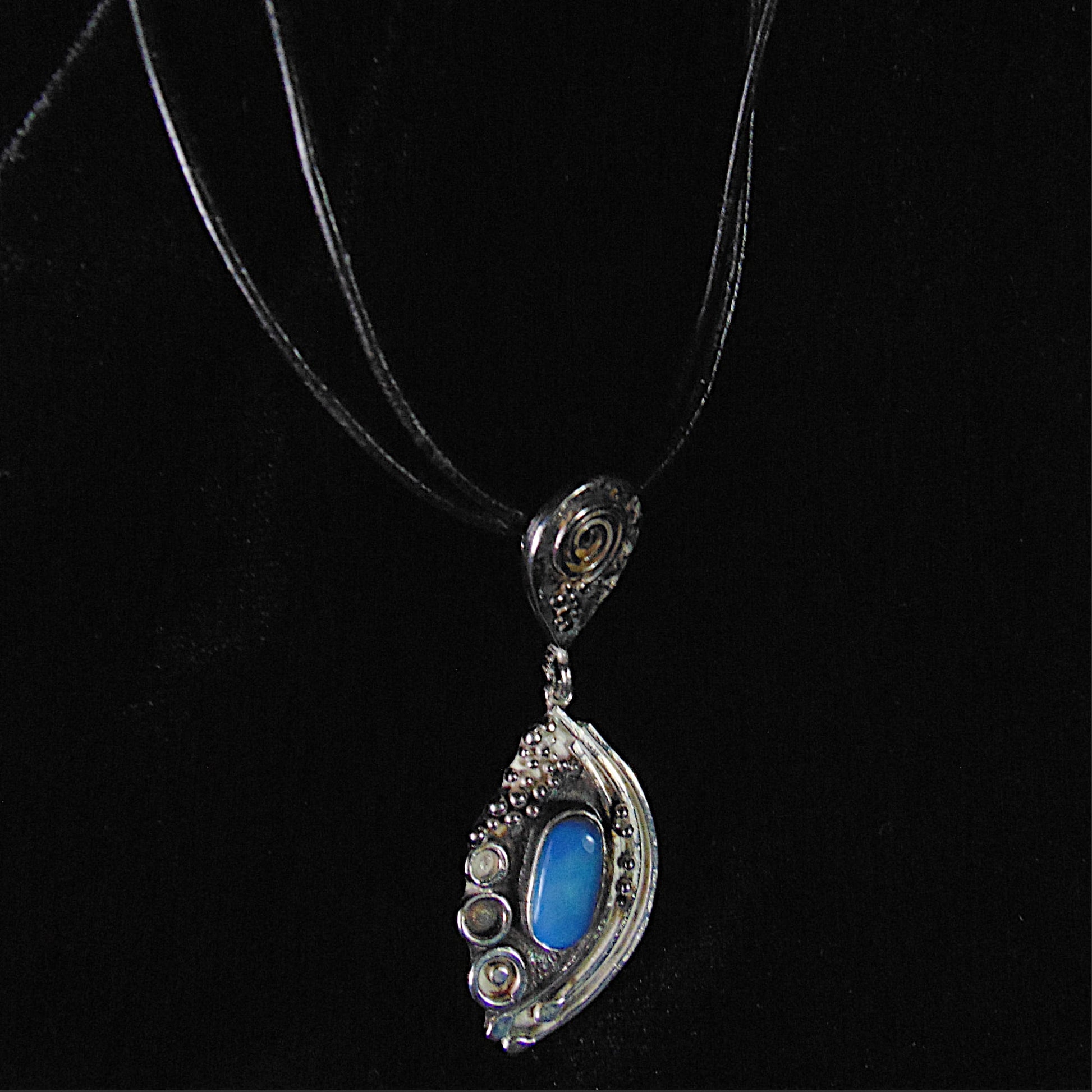 Srebrny Wisior Fantazyjny z Niebieskim Opalem