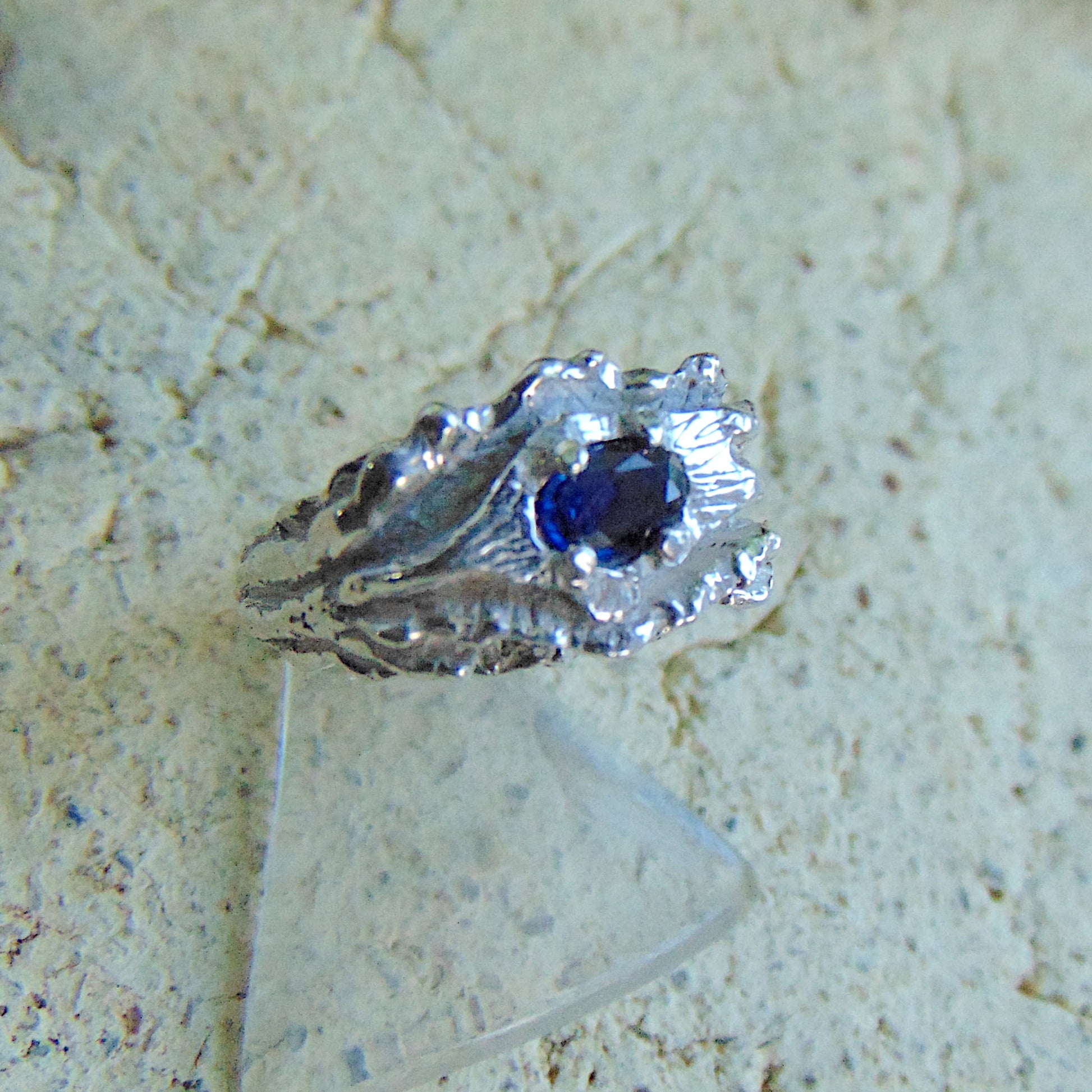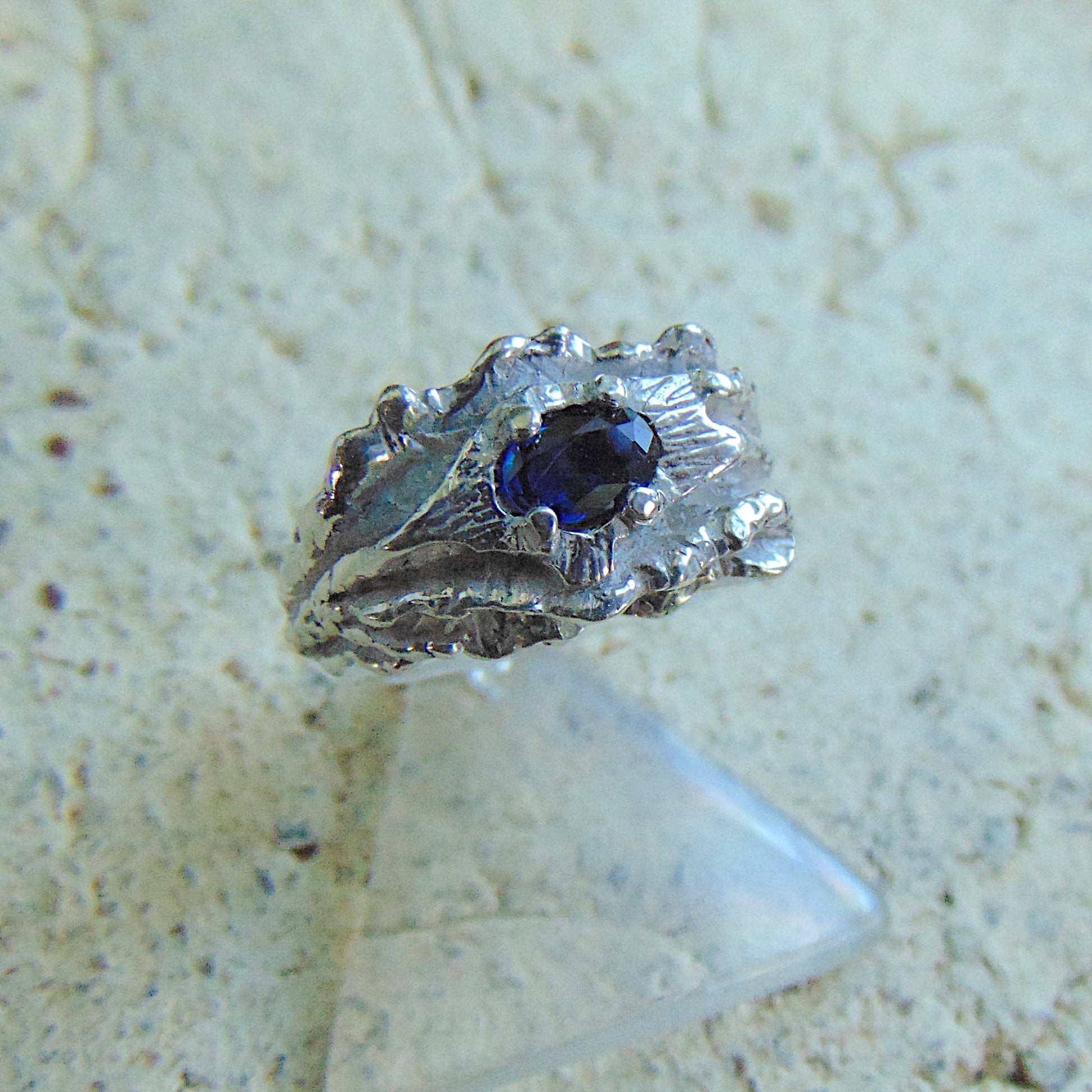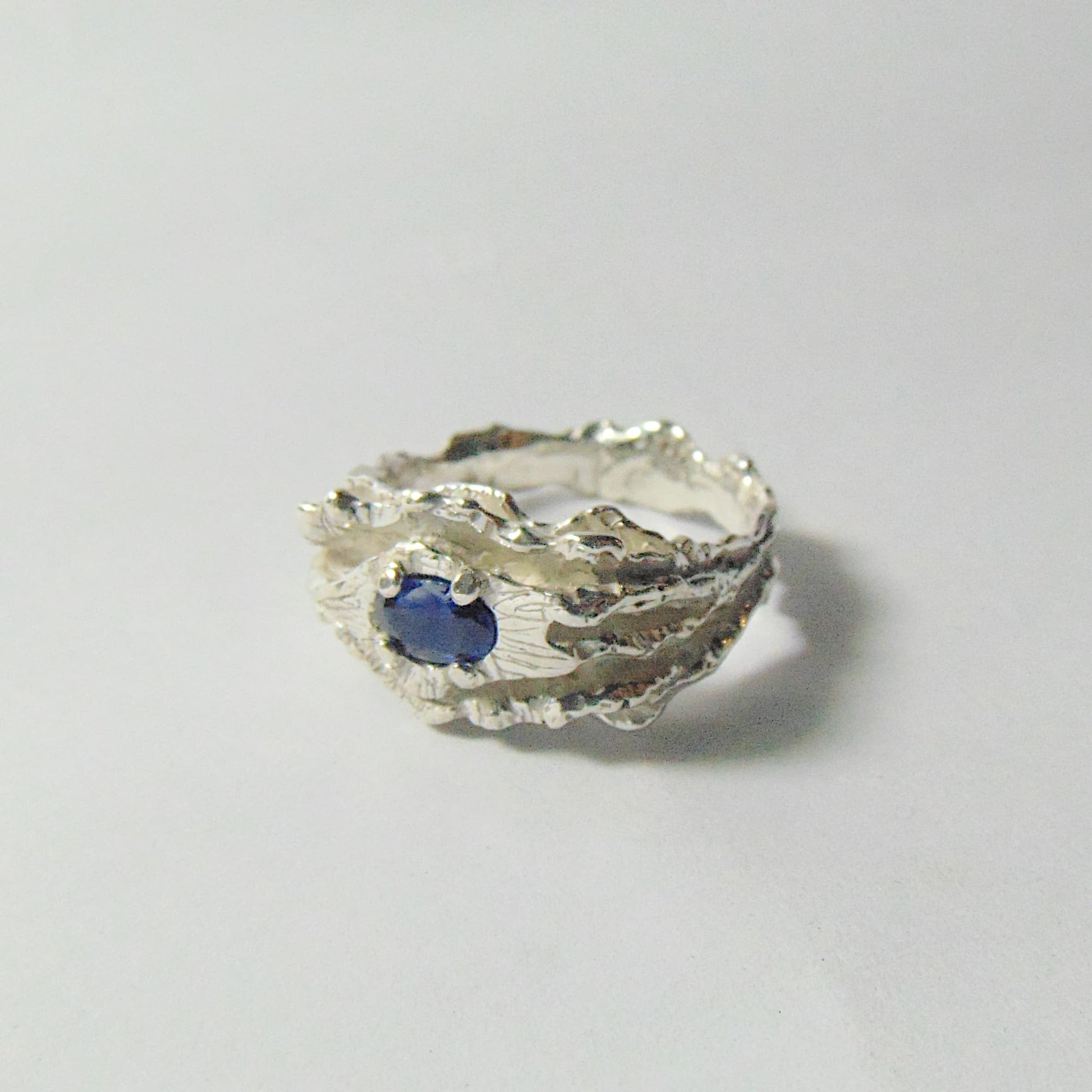 Pierścionek srebrny Fale Wody z szafirem