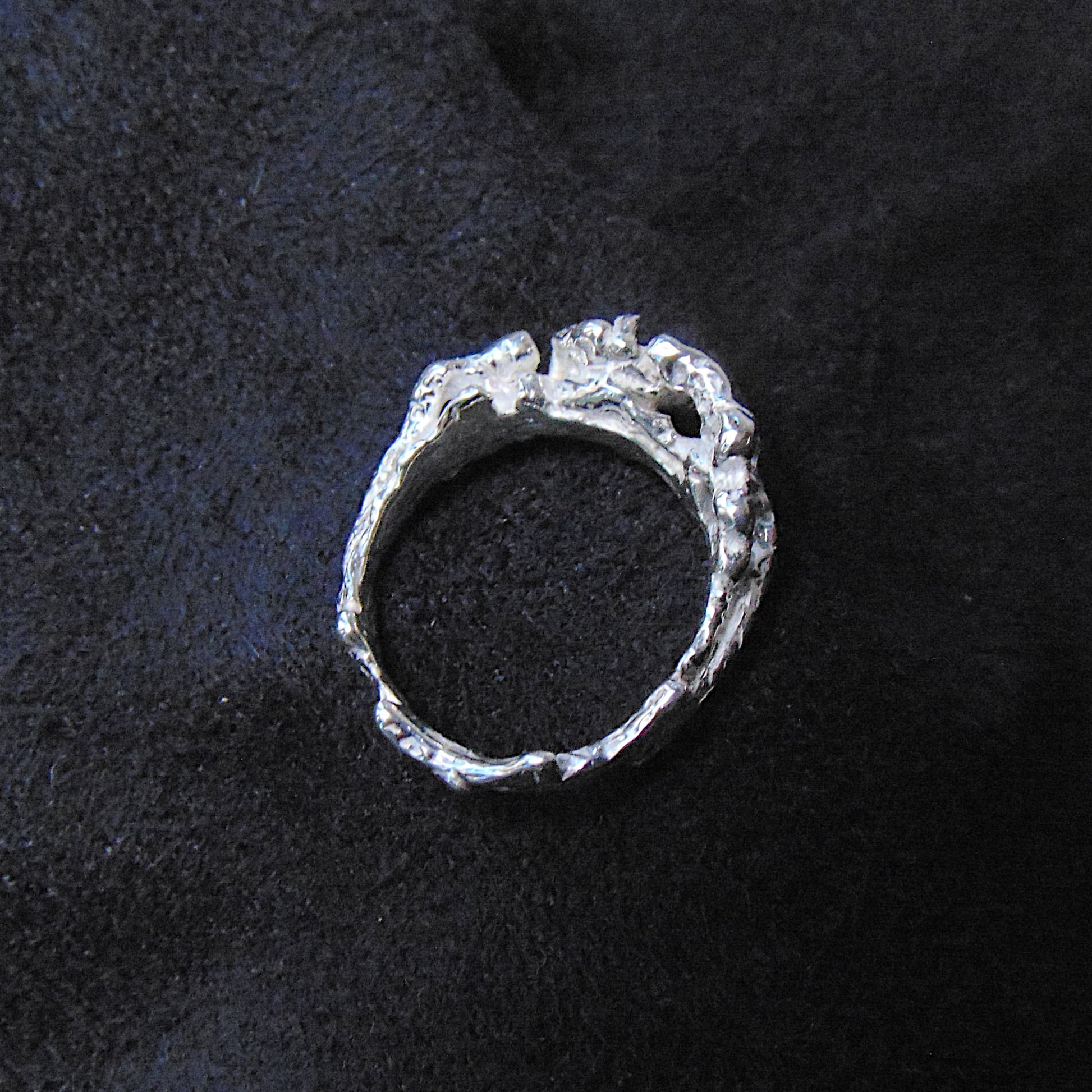 Organiczny Splot: Szyna nie jest klasyczną obrączką, lecz artystyczną wizją splątanych gałązek, co sprawia, że pierścień prezentuje się intrygująco z każdej strony. Spójność Kolekcji: Projekt został sformatowany tak, aby tworzyć idealny duet z kolczykami 'Gałązki', budując kompletny, artystyczny wizerunek.