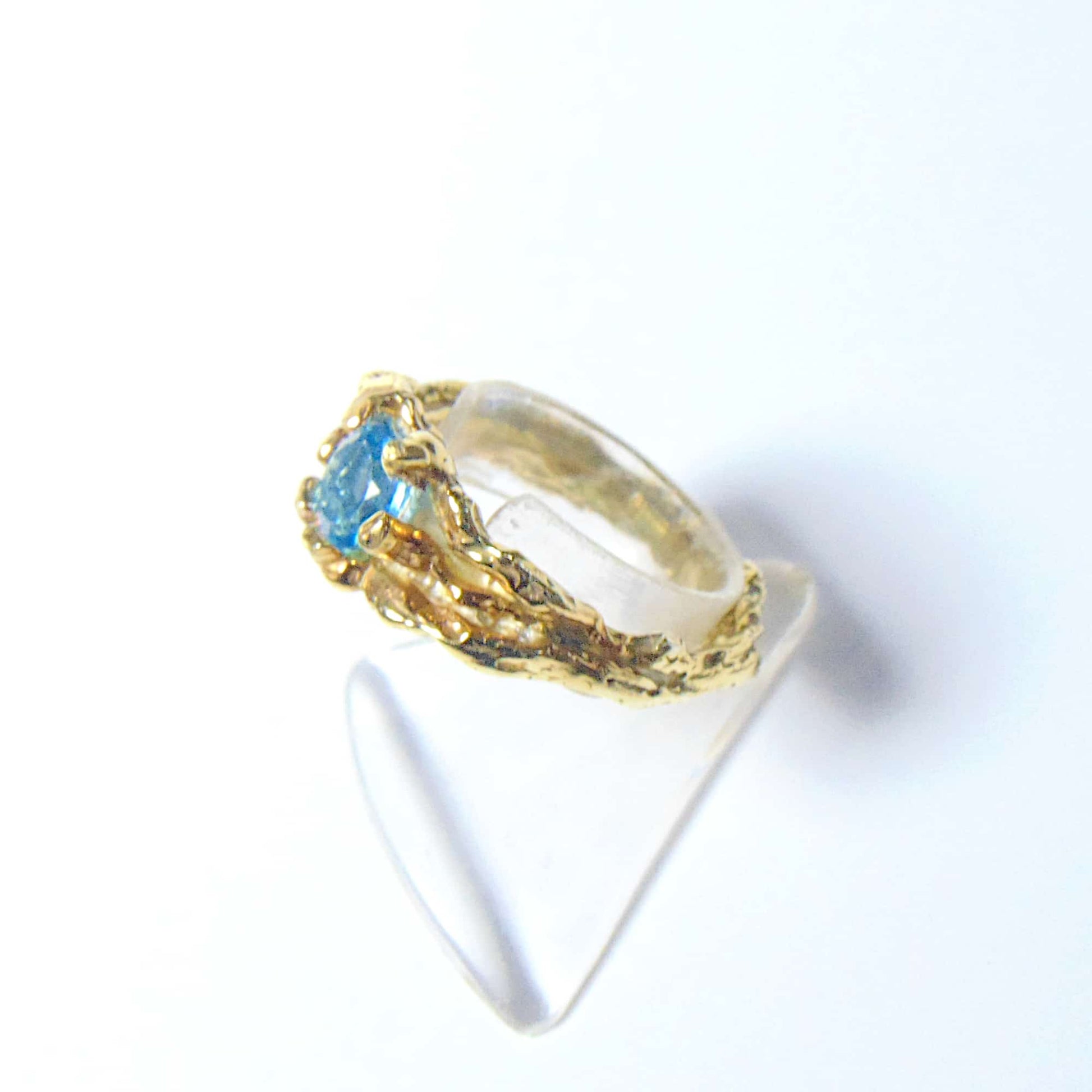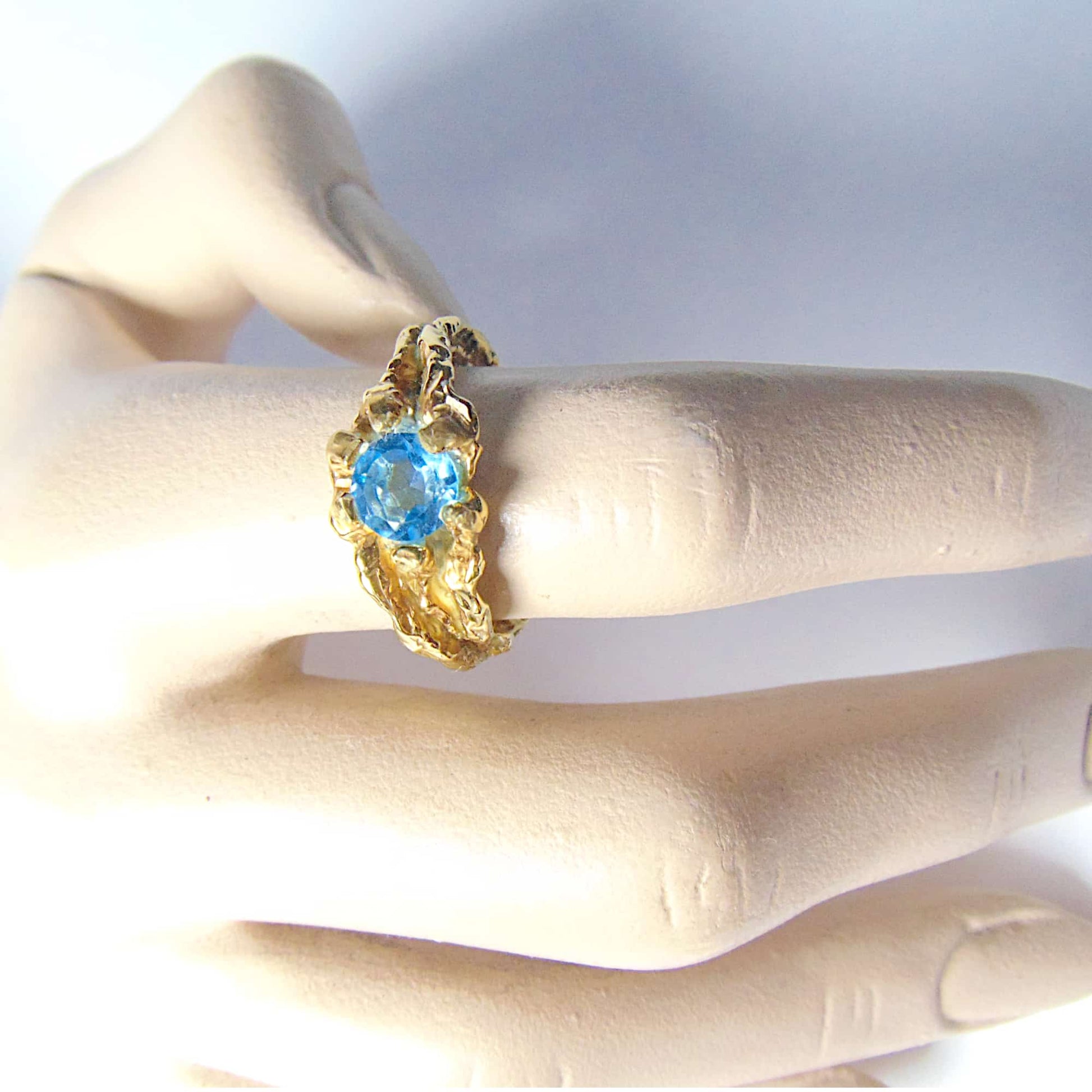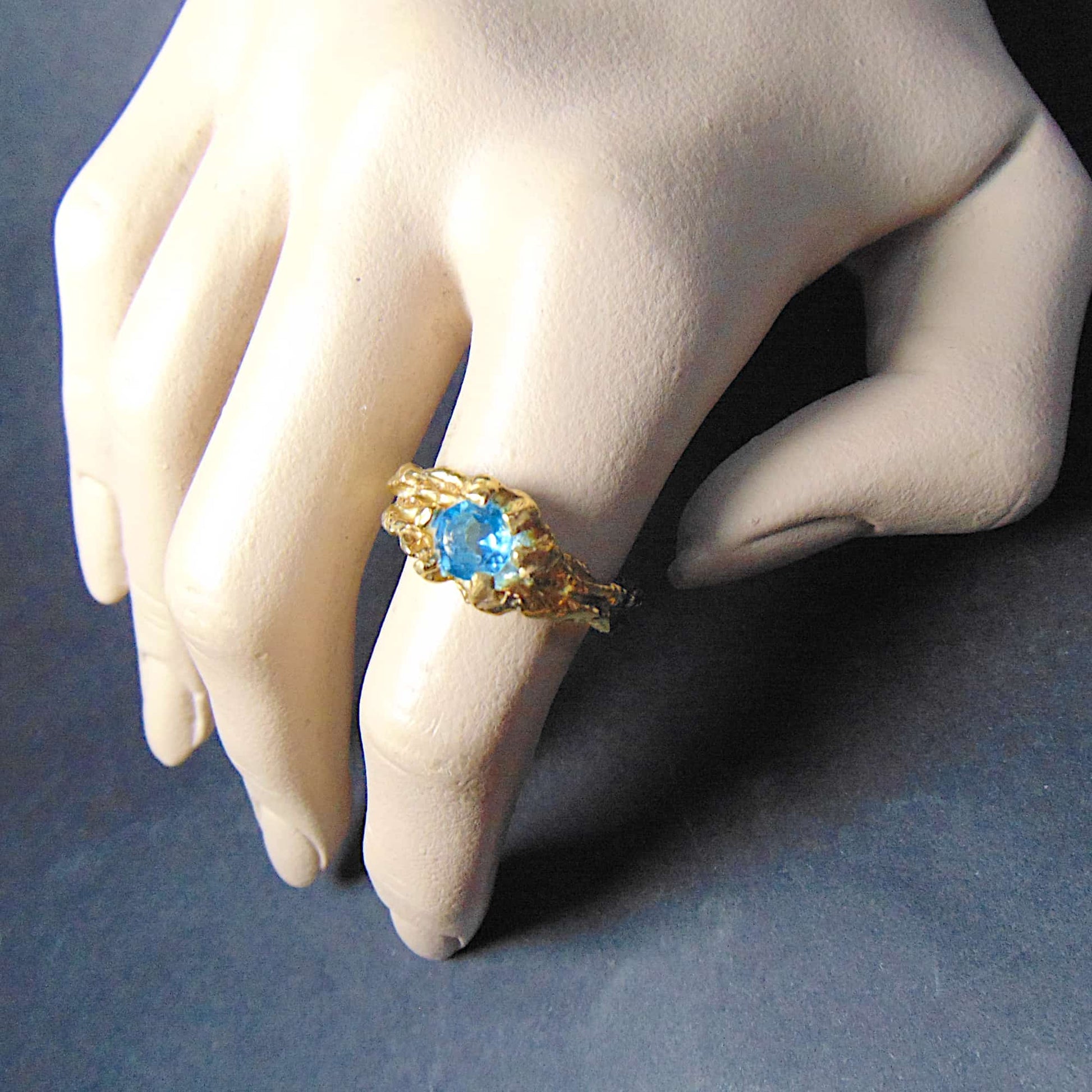 Pierścionek "Gałązki" ze Złota 585/333 z Fasetowanym Topazem Swiss Blue – Organiczna Elegancja i Solidna Konstrukcja