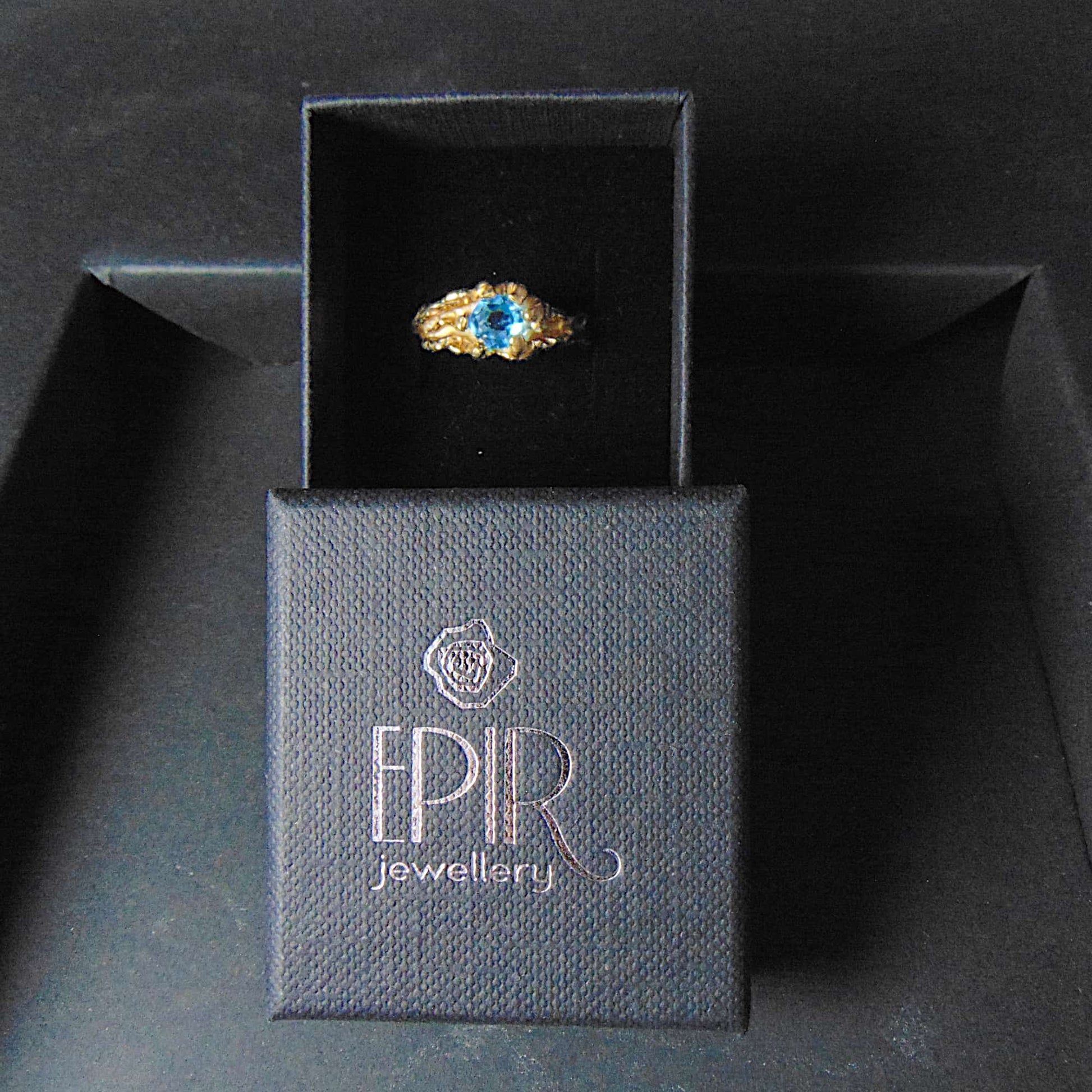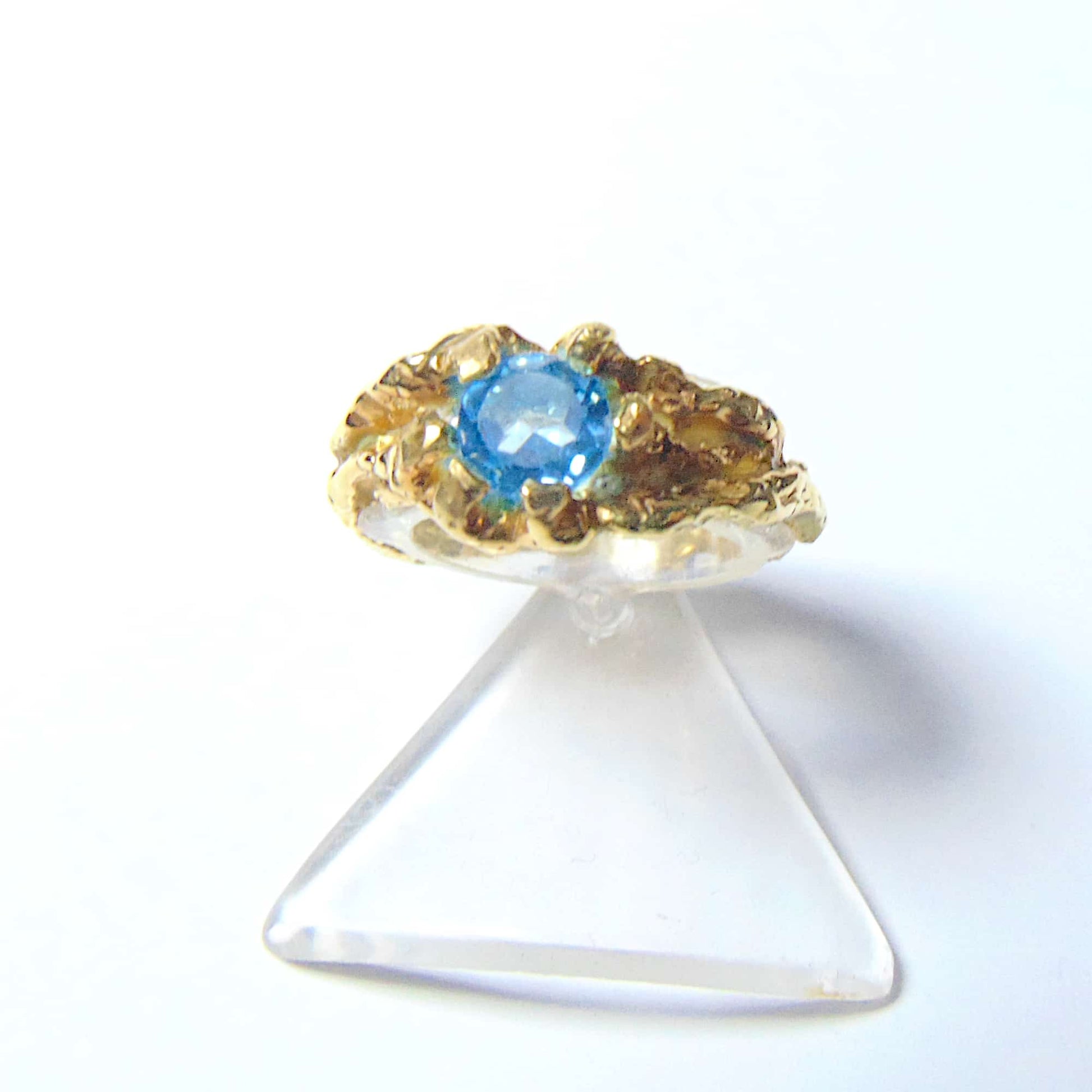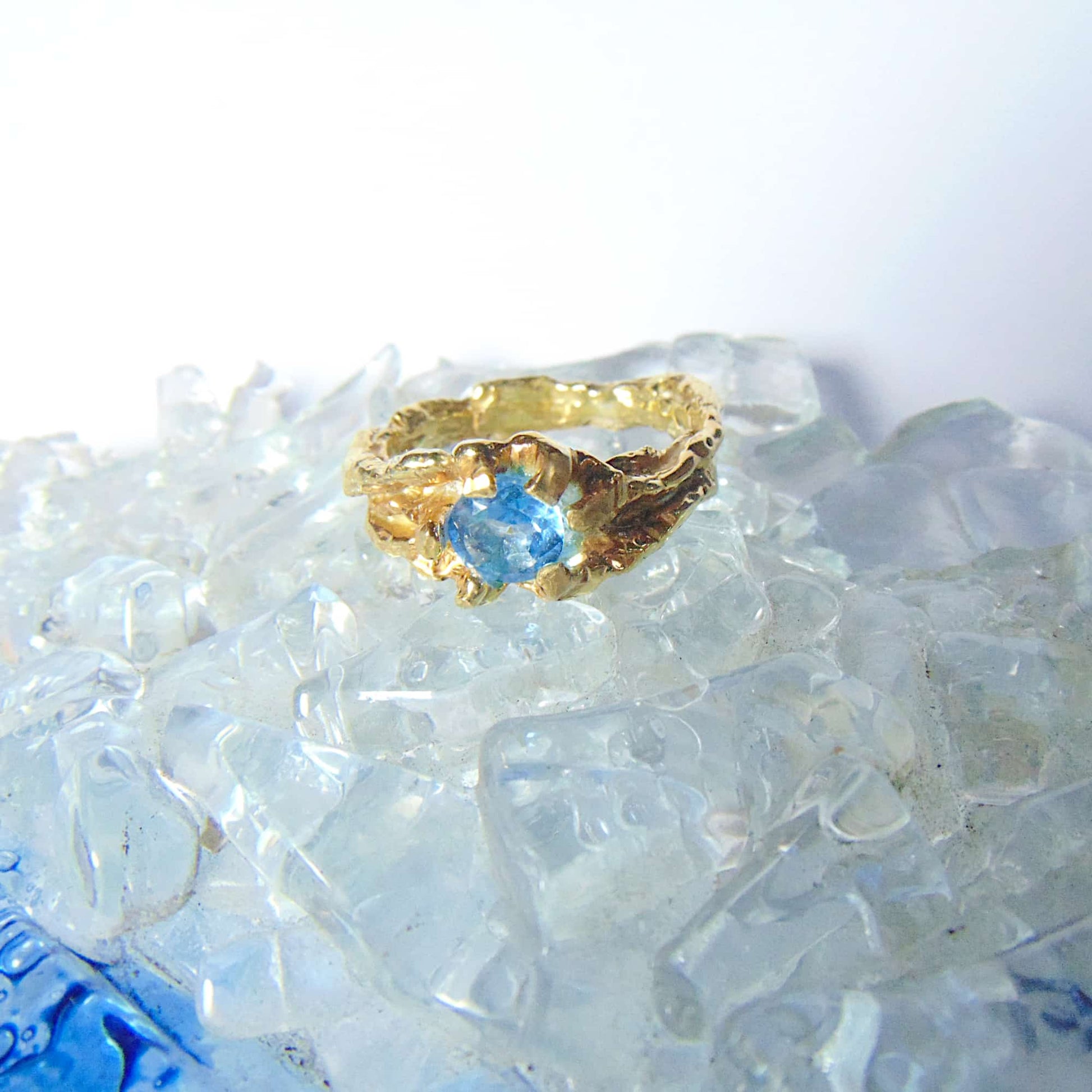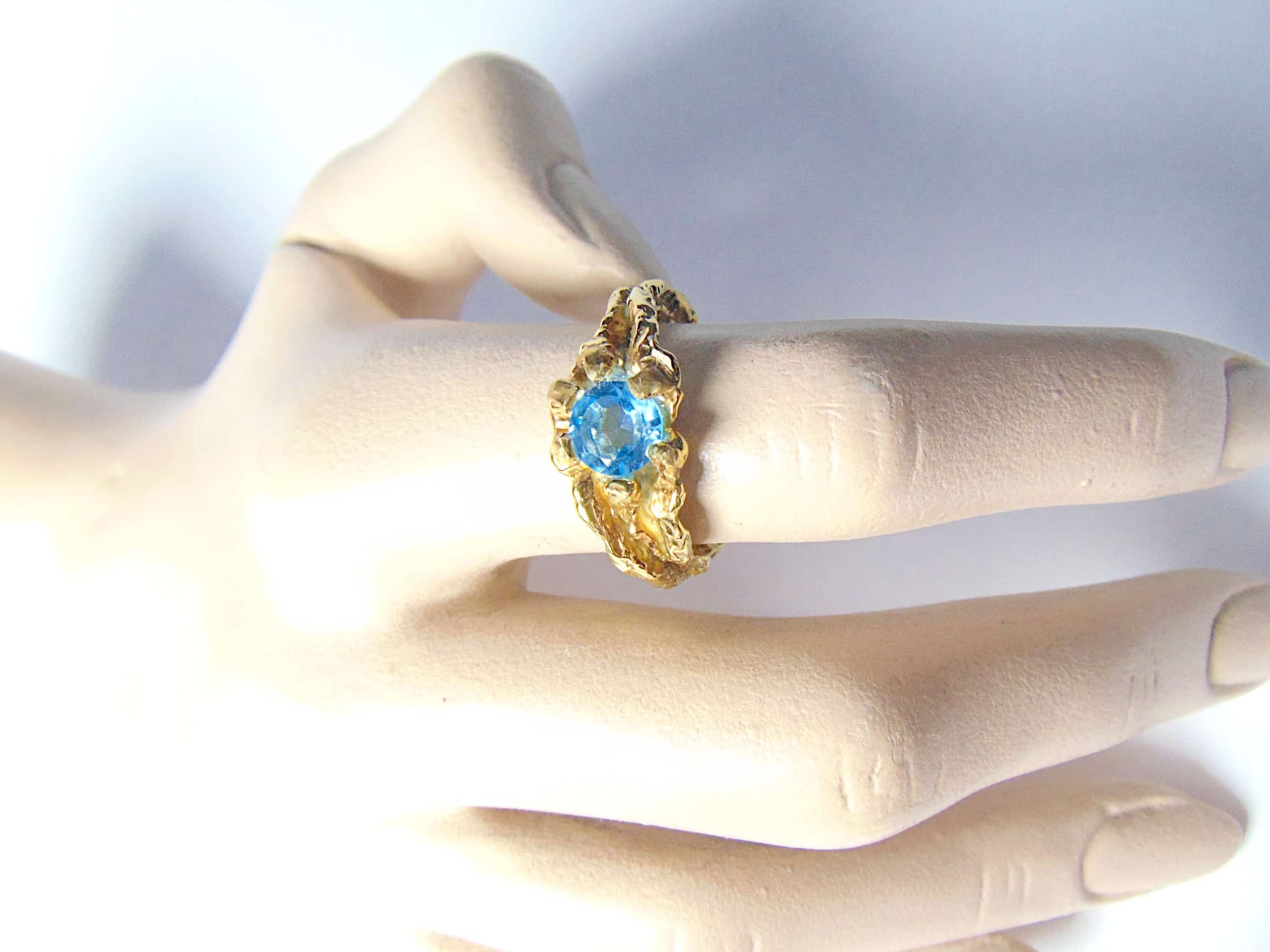 Pierścionek "Gałązki" ze Złota 585/333 z Fasetowanym Topazem Swiss Blue – Organiczna Elegancja i Solidna Konstrukcja