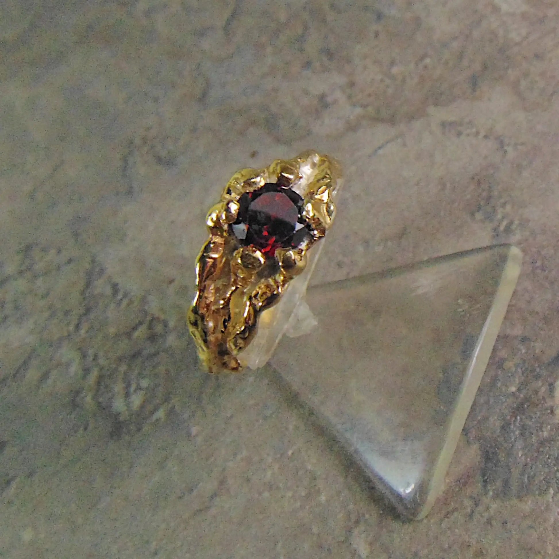 Pierścionek Złocony z Granatem – Organiczna Forma, Głębia Koloru- z kolekcji "Gałązki"